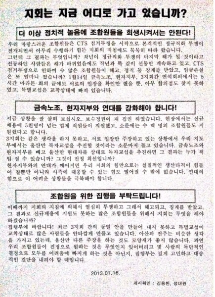 아울러 이들은 비정규직 지회가 주장하는 ‘임금격차’, ‘고용불안정’, ‘노동환경’ 등에 대해 ‘당연하다’는 입장으로 버티고 있다. 진정성을 가지고 소통하려는 노력이 부족하다는 게 업계 시각이다.