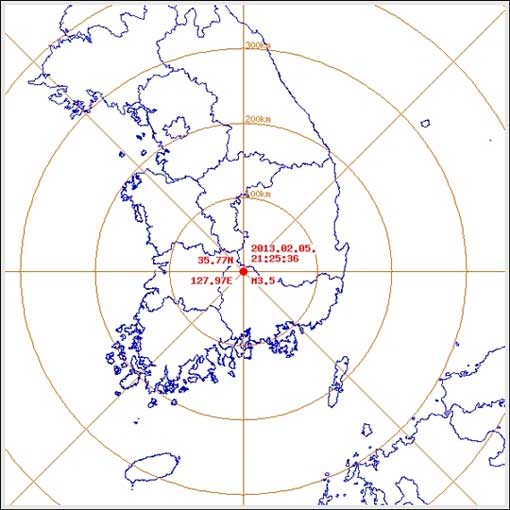 기상청에 따르면 이번 지진은 경남 거창군 북북동쪽 11km 지점에서 발생했으며 규모 3.5로 인근 대구·경주·여수·상주·전주 등까지도 진도 3.0수준의 진동이 발생했다.
