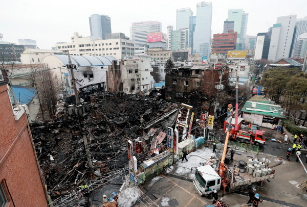 화재 발생 직후 소방차 66대와 184명의 소방관, 329명의 경찰 병력이 투입됐지만 좁은 골목길이어서 소방차 7대만이 화재 현장에 접근할 수 있었던 것. 큰 불길을 잡는데는 1시간 30여분이 걸렸으며 잔불 진화작업은 이튿날까지 계속됐다.