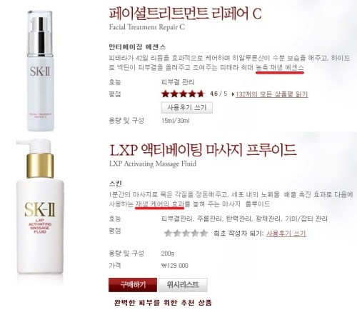 그 동안 SK2는 일부 제품이 피부를 '재생'시키는 효과가 있다고 자사 홈페이지에 게재해 광고해왔다.