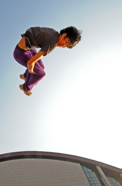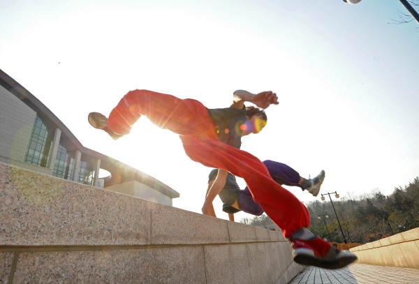 연습중에 나선 이들은 파쿠르 동호회 'DESOP(dynamic Extreme sports of Parkour)회원들로 아직 쌀쌀한 바람이 부는 날씨에도 불구하고 가벼운 차림으로 연습에 나선 모습이 인상적이다.