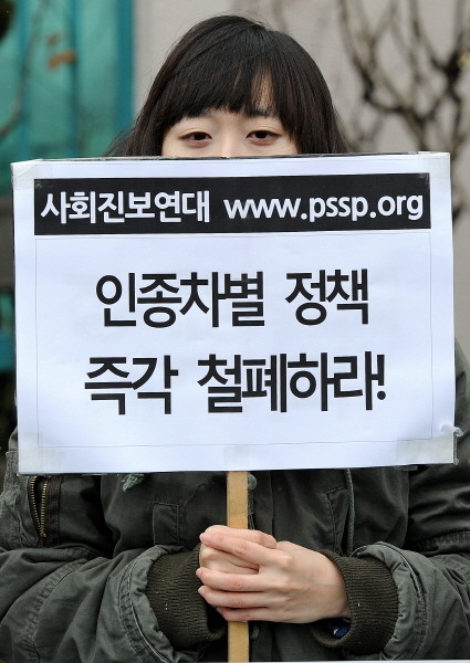 [일요주간= 이장우 기자] 세계인종차별 철폐의 날을 하루 앞둔 20일, 서울 세종로 정부서울청사 앞에서 "정부는 인종차별적 이주 정책 시행을 전면 중단하라"며 이주공동행동 회원 등 사회단체가 모여 기자회견을 열었다.