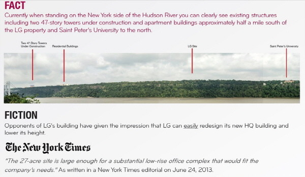 앞서 뉴욕타임즈도 "뉴욕과 뉴저지의 100년간의 노력을 LG전자 신사옥 프로젝트가 망치려고 하고 있다"고 비난한 바 있다.