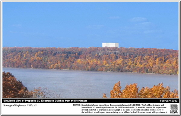 8일(현지시각) 뉴저지 최대 일간지인 스타레저는 이날 자 보도에서 '팰리세이즈를 보호하라(Protect the Palisades)'는 제호의 사설을 통해 "LG전자 신사옥 건립이 허드슨강을 끼고 있는 팰리세이즈 숲의 풍치를 훼손하려고 한다"면서 3억 달러의 프로젝트가 비난 받는 이유라고 지적했다.