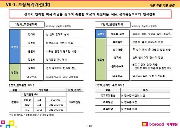 또 “센터장과 케이블 기사들의 임금을 활동비 명목으로 티브로드 본사가 직접 책정하고 지급했으며 본사가 센터 근로자들에 대한 실적목표제를 직접 시행하고 인센티브를 지급했을 뿐만 아니라 센터 부진인력 퇴출제도를 직접 지시하고 시행한 것으로 확인됐다”고 폭로했다.