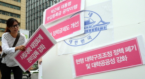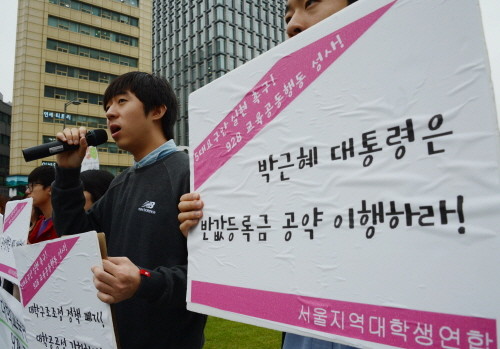 이날 모인 학생들은 사립대학 재정회계 감리감독 강화, 국가장학금 제도 개선, 국공립대 기성회비폐지 및 교육재정 확충, 현행 대학구조조정 정책폐기 및 대학 공공성 강화, 반값등록금 공약 이행을 강력히 촉구했다.