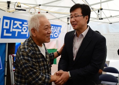 | ▲ 김한길 민주당 대표(좌) 천호선 정의당 대표(우) @Newsis | ||