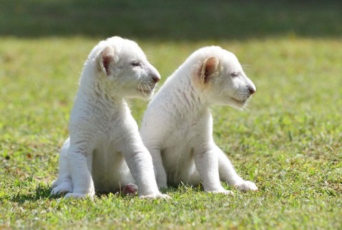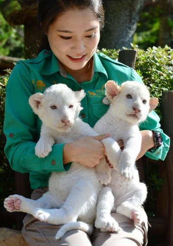 이번에 공개된 아기 백사자 2마리는 지난 8월 28일 각각 2.5kg, 3kg으로 태어났으며 하루 평균 130cc 이상의 우유를 먹으며 건강하게 지내고 있다. 백사자들은 내년 봄 다른 백사자 가족들과 함께 손님들에게 공개될 예정이다. (사진=에버랜드 제공)