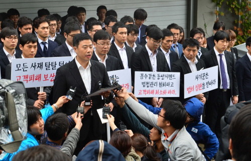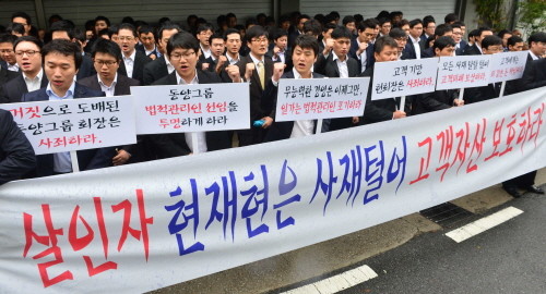 이후 성북동 현 회장 자택으로 이동한 노조는 지난 2일 스스로 목숨을 끊은 동양증권 제주지점 여직원 K씨의 유서를 낭독하고 현 회장과 오너 일가를 규탄하는 시위를 이어가며 사죄를 촉구했다.