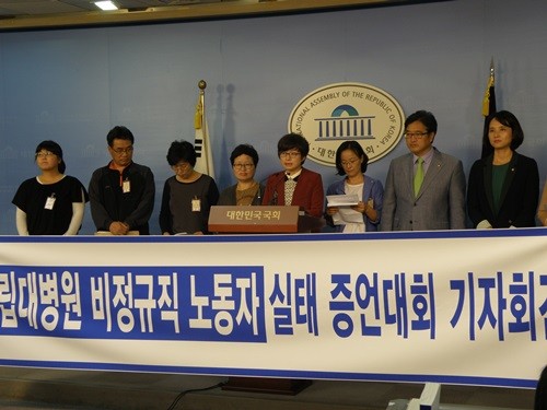 10일 을지로위원회와 전국공공운수사회서비스노동조합, 의료연대본부는 국회 정론관에서 기자회견을 통해 “민간의료기관의 모범이 되어야 할 국립대병원은 돈벌이에 눈이 멀어 비정규 확대에 팔을 걷어 붙였다”면서 “국민 건강에 악영향을 초래하는 국립대병원의 비정규직 확대 정책은 즉각 폐기되어야 한다”고 밝혔다.