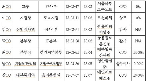 뿐만 아니라 기업을 핵심요직으로 자리를 옮긴 사례도 나타났다. 에콘힐자산관리로 옮긴 최모 전 경인지역본부장 등 3명은 CFO(재무담당최고책임자)로 옮겼으며 이모 전 도쿄지점장 등 2명은 상무로 직급 상승의 효과까지 누렸다.