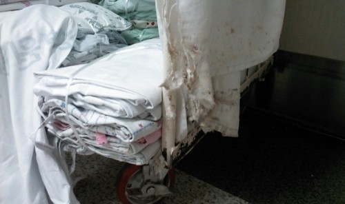 윤 의원은 “서울대병원의 세탁물은 병원 바닥과 녹슨 수레 부위에 쓸려 낡았을 뿐만 아니라 검은 때가 잔뜩 낄 정도로 관리가 허술하다”고 지적했다.