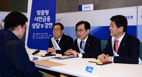 | ▲ 조준희 기업은행장(가운데), 송해 홍보대사(좌측)가 맞춤형 서민금융상담 행사를 갖고 있는 모습.@Newsis | ||