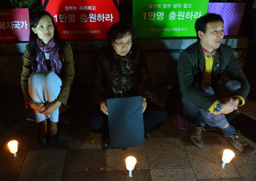 세밧사는 이날 집회에서 2014년 내에 사회복지공무원 1만명 충원과 함께 사회복지공무원의 노동안전권과 생명권 보장 등을 요구했다.