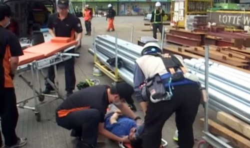 | 지난 6월 25일 서울 잠실동 제2롯데월드 타워 공사장에서 건축 구조물이 떨어져 1명이 숨지고 5명이 경상을 입었다. (사진=송파소방서 제공) | ||