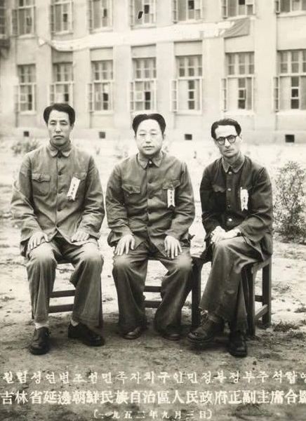 | ▲주덕해가 제1기 연변조선민족자치주 주석으로 당선되었다.(가운데) | ||