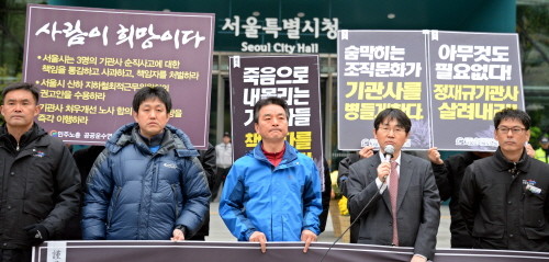 이들은 또 고용노동부의 특별근로감독 실시와 서울도시철도공사가 기관사 사망사건 재발방지를 위해 합의한 노사합의사항의 이행을 촉구했다.
