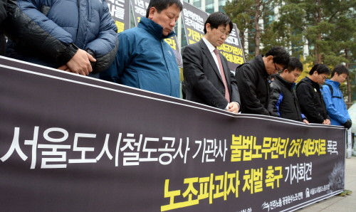 이날 민노총은 서울시는 서울도시철도공사에 대한 특별 감사결과를 공개하고 관련 책임자를 문책하라고 목소리를 높였다.