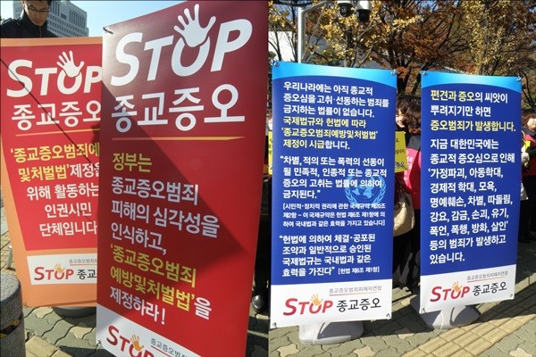 한편 ‘STOP종교증오’는 이날 기자회견을 마친 후 법무부와 대검찰청에 진정서를 제출하고, 검찰 관계자 및 시민을 상대로 종교증오범죄에 대한 대국민인식전환 캠페인 및 종교증오범죄예방및 처벌법 제정을 위한 서명운동을 펼쳤다.