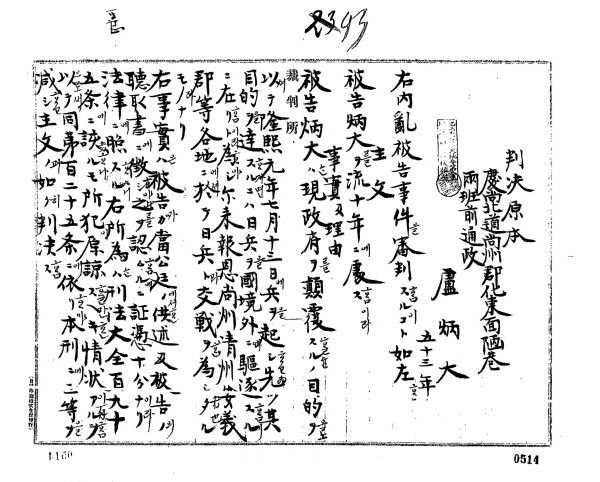 | ▲ 노병대 선생 판결문(1908. 9. 14) | ||