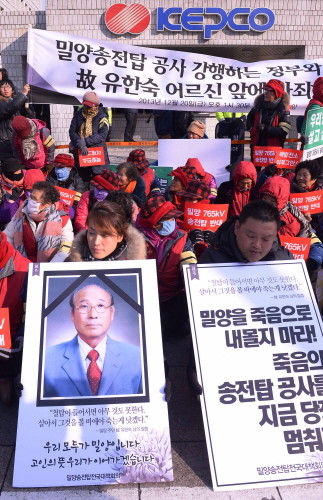 송전탑 공사 현장 인근에 거주했던 유씨는 한전의 밀양송전탑 건설을 반대하며 음독 자살이라는 극단적인 선택을 했다. 자살 직전 그는 “송전탑이 서는 걸 보느니 차라리 죽는 게 낫다”는 말을 남겼다.