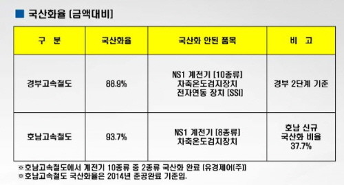 | ▲ 한국철도시설공단이 민주당 이미경 의원실에 제출한 LS산전의 국산화율 자료 일부 <자료제공=이미경 의원실> | ||