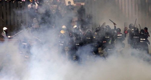 이날 총선 출마 후보자들이 기호 추첨을 위해 스포츠 스타디움에 모여 있던 가운데 스타디움 외곽에서 시위대와 경찰이 맞부딪혔다.