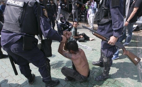 태국개혁 학생시민연합(STR) 시위대들은 이날 오전 6시 딘댕 지역에 모여 경기장으로 행진을 시작해 경기장 도착 후 입구를 봉쇄한 체인을 절단하고 내부로 침입했으며 오전 8시께 경찰은 진압을 위해 최루탄과 고무탄을 발사하기 시작했다.