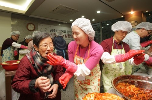 금호타이어(대표 김창규)가 연말을 맞아 통상적으로 회식의 송년회 대신 나눔과 참여가 있는 뜻깊은 송년회를 위해 지난 12일 오후 서울 종로구 노인종합복지회관에서 ‘사랑나눔 김장행사’를 열었다.