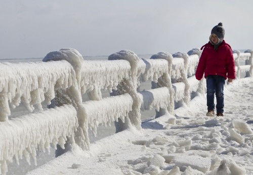 동유럽을 강타한 한파로 지난 1일(현지시간) 루마니아 콘스탄차 흑해 해안에 설치된 방파제가 꽁꽁 얼어붙었다. 루마니아는 이번 한파로 기온이 영하 32.5도까지 떨어졌다.