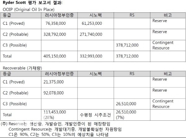 | ▲ 한국거래소에서 요청해서 받아낸 빈카유전 평가 보고서에 기재된 원유 매장량 | ||