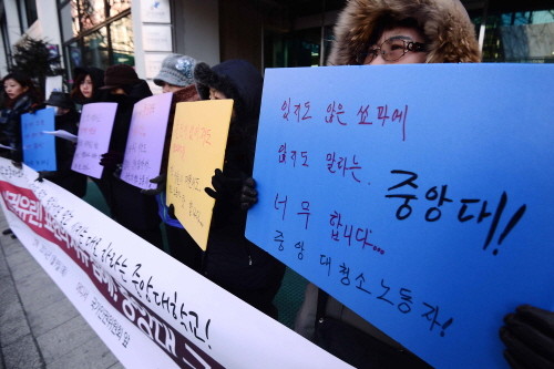 한편 지난달 16일부터 중앙대 청소노동자들은 노동탄압 중단과 근로환경 개선 등을 요구하며 파업 중이다.