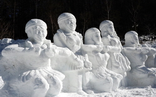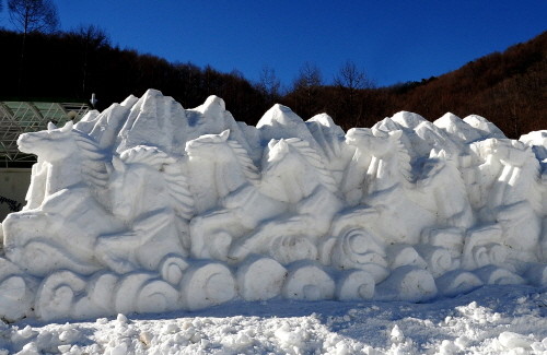 | ▲ 태백산 입구에 설치된 눈조각 작품‘백마들의 행진’ⓒNewsis | ||