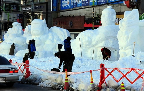 | ▲ 눈조각 작품 마무리 중인 태백시 | ||