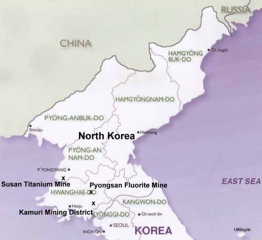 ‘철광석’은 함경북도 무산군의 무산광산을 중심으로 집중 매장되어 있고, 그 다음으로 황해남도 은률과 재령 일대, 함경남도 허천, 덕정, 북청지구 및 강원도 창도군 등 13개 광산에 분포되어 있다.