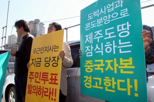 이들은 “우근민 지사가 드림타워 허가 여부를 차기도정에 넘겨야 한다는 요구를 거부한 채 끝내 허가를 내주려는 것 같다”며 “(우 지사는) 사업자 측의 입장만 두둔 하지 말고 지방선거가 끝난 이 후 주민투표 발의를 통해 드림타워와 카지노 허가여부를 도민에게 물어야 한다”고 주장했다.