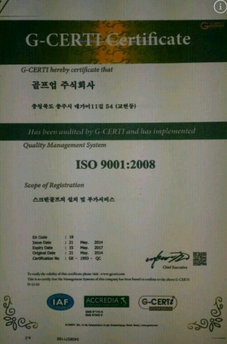 제조, 설치, 그리고 서비스에 이르기까지의 품질을 보증해주는 ISO9001 인증으로 골프업(주)의 신뢰도가 한층 높아지게 됐다.