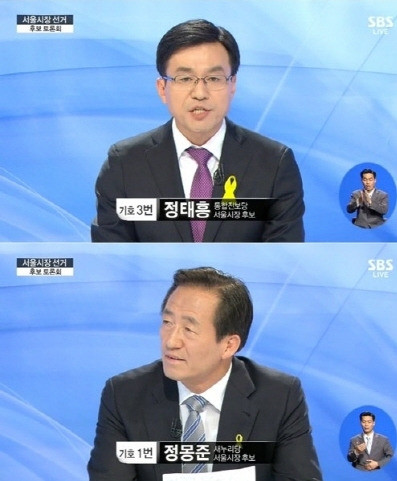 지난 26일 서울 여의도 MBC 방송국 스튜디오에서 열린 ‘서울시장 후보자 토론회’에는 새누리당 정몽준 후보, 새정치민주연합 박원순 후보, 통합진보당 정태흥 후보가 참석했다.
