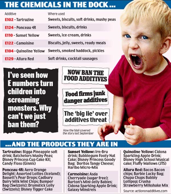 보존료와 착색제, 화학적 합성한 조미료에 다수 포함
