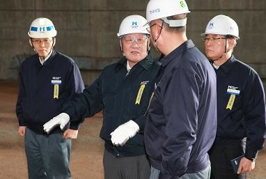 | ▲현대기아차그룹 정몽구 회장이 현대제철 당진공장을 방문한 모습. ⓒNewsis | ||