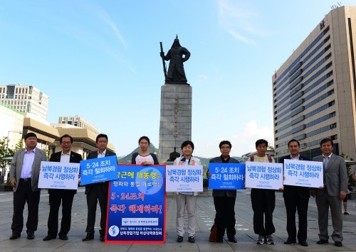 새정치민주연합 남북관계발전 및 통일위원회 의원들을 비롯해 흥사단민족통일본부회원, 남북경협포럼, 남북경협 비대위 관계자들은 이날 5.24조치 해제와 남북경협 정상화를 촉구했다.