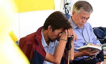 | ▲ 문재인 새정치민주연합 의원이 20일 서울 종로구 광화문광장 세월호 단식농성장에서 세월호 희생자 유가족 김영오 씨와 함께 자리하고 있다. ⓒNewsis | ||
