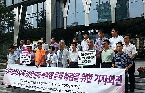 | ▲ 아모레퍼시픽 피해점주들. ⓒNewsis | ||