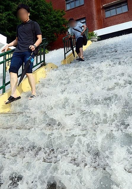 지난 25일에는 부산 북구 양덕여중 뒷산에서 기록적인 폭우가 쏟아져 3층까지 잠기면서 학생 등 400여 명이 옥상 등으로 대피했다.