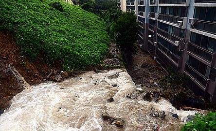 또한 도로 절개지가 무너져 토사와 빗물이 절벽 아래 아파트로 쏟아지는 등 침수사고가 속출하고 있다.