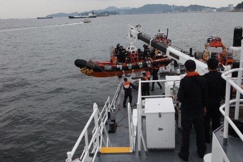 여수해경은 중형 경비함 2척과 모의 중국어선, 진압용 고속단정 2척 등 모두 5척을 동원해 불법조업 어선 발견 시 정선 명령과 추적, 선박 검문검색, 나포·조사 순으로 강도높은 훈련을 실시했다.