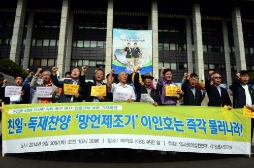 당시 야당과 역사단체 등은 이인호씨가 친일 뉴라이트 인사로 공영방송 이사장을 맡기에는 부적합한 인물이라며 내정 철회를 촉구했다.