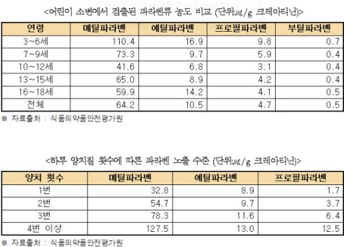 이어 “구강티슈는 2011년 의약외품으로 지정된 이후 지난해 3월에 구강에서 용출되는 성분의 안전성 확보 차원에서 보존제의 허용범위를 내용제 수준인 0.01%이하로 낮춘 바 있지만 어린이용치약을 포함한 치약류에 대해서는 1995년 이후 현재까지 19년간 구강티슈보다 20배나 높은 파라벤 허용기준치가 그대로 적용되고 있다”고 지적했다.