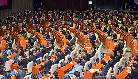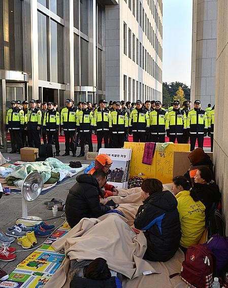 반면 국회 밖에서는 “유가족을 좀 살려달라”고 고함을 지르며 주저 않아 우는 세월호 유가족들의 모습들이 눈에 띄었다.