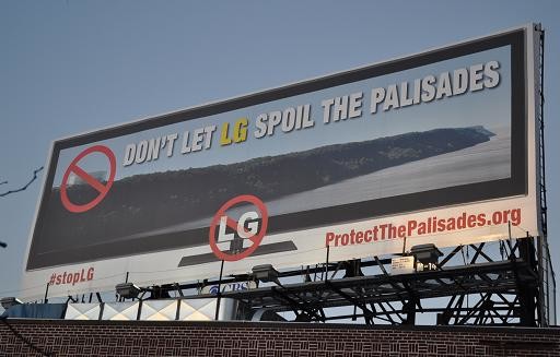 | ▲ 뉴욕 허드슨강변에 LG전자 미주본사 사옥 신축을 반대하는 대형빌보드 광고가 등장했다. ⓒNewsis | ||